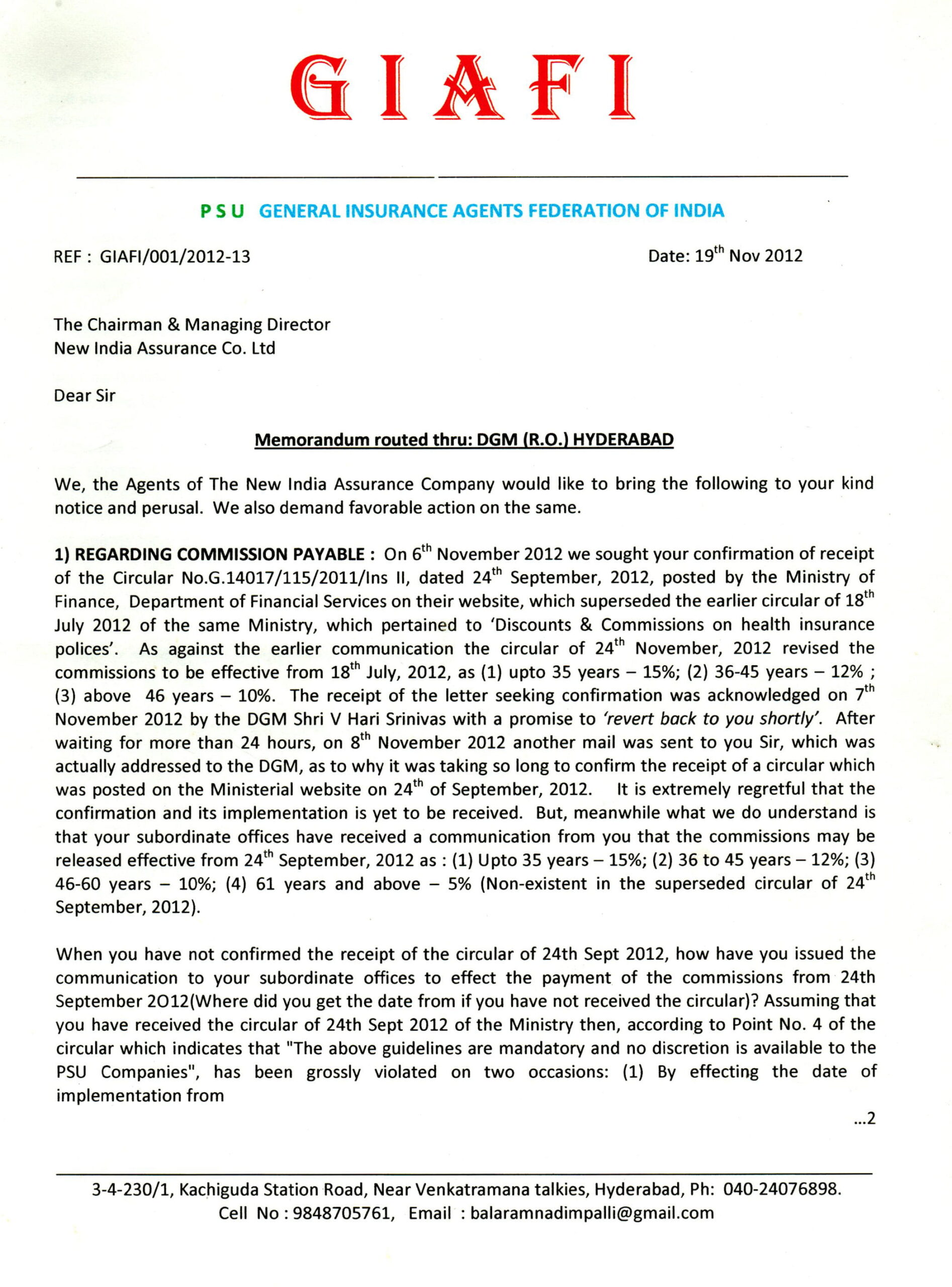 Started Agents association in New India Assurance Company Divisional Office in the month of April 2012, for commission paying issue in this particular month. We were only five agents from our DO and started association activity.